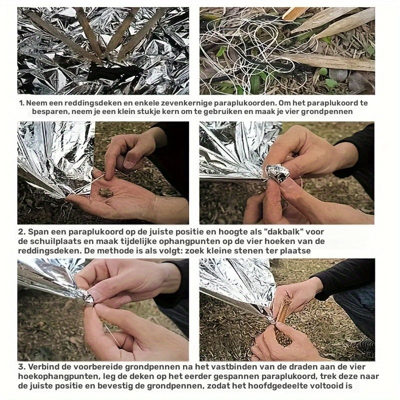 Elke ThermalShield nooddeken is direct inzetbaar. Je kunt een deken om je lichaam slaan, over een slaapzak leggen, gebruiken als bescherming tegen de grond of inzetten als eenvoudige schuilconstructie. Dankzij het 5-pack heb je altijd meerdere dekens beschikbaar voor gezinsleden of verschillende toepassingen.